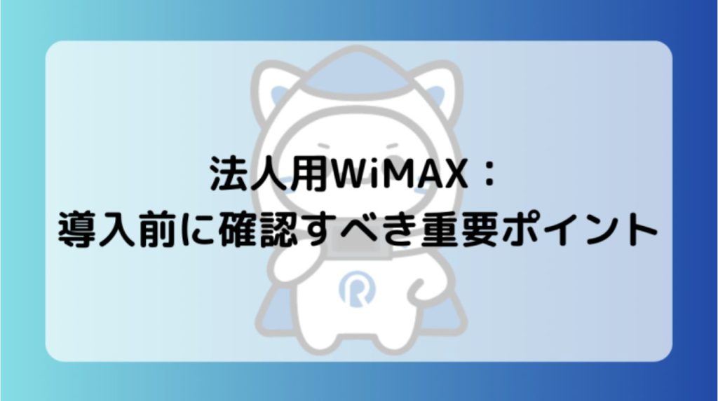 法人用WiMAX:導入前に確認すべき重要ポイント