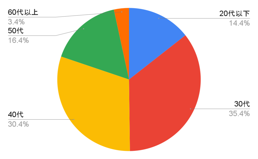今回のアンケートでは女性の方が多く反応していただき、30代・40代を中心に多く回答いただきました。
