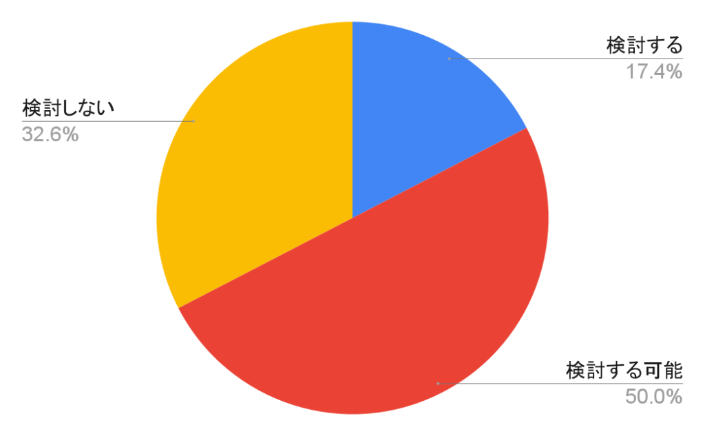 むしろ「検討しない」と回答した人が、前回よりも42人増加しました。