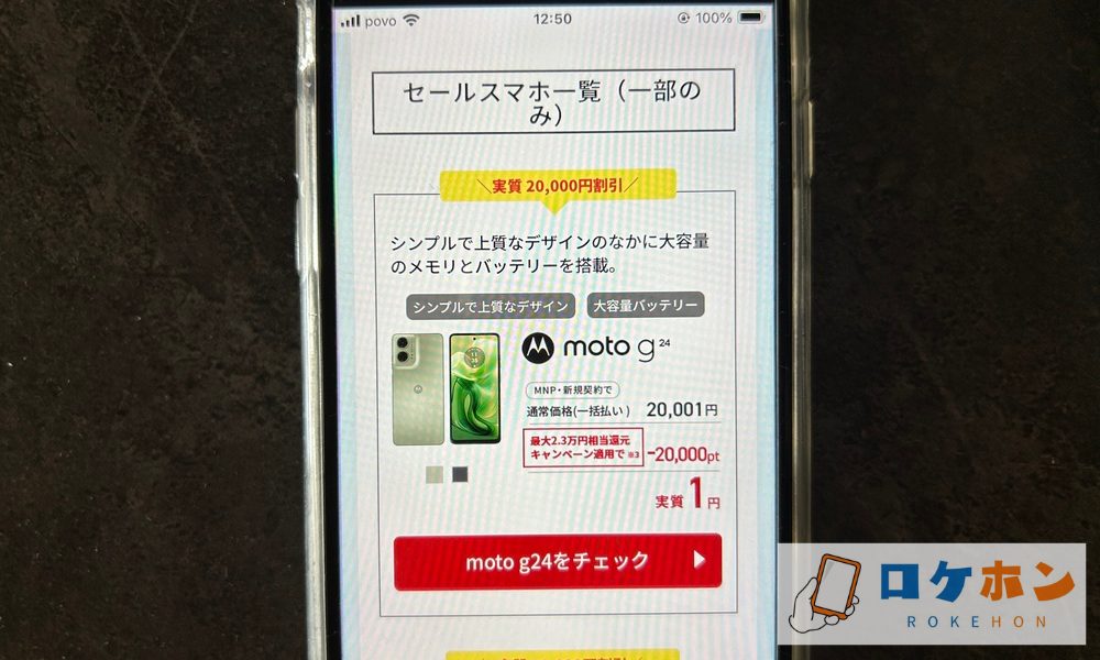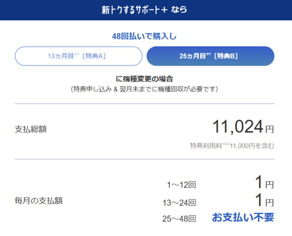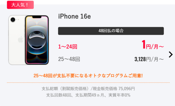 実質負担24円(48回払い・25か月目に端末返却/月々1円)