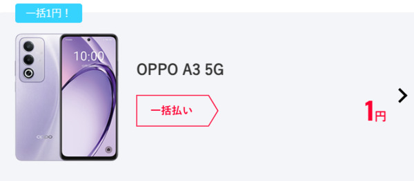 楽天モバイルOPPO A3 5G一括1円