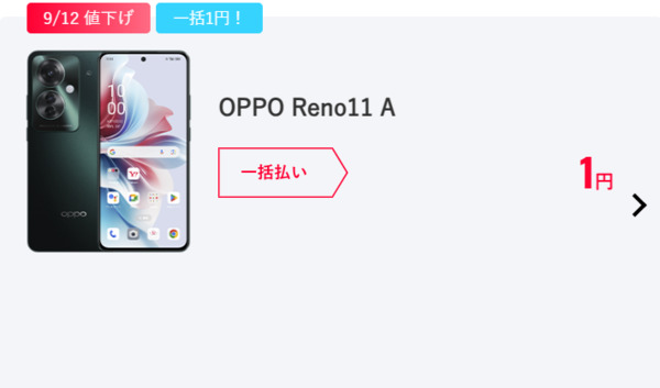 ワイモバイルOPPO Reno11 A一括1円