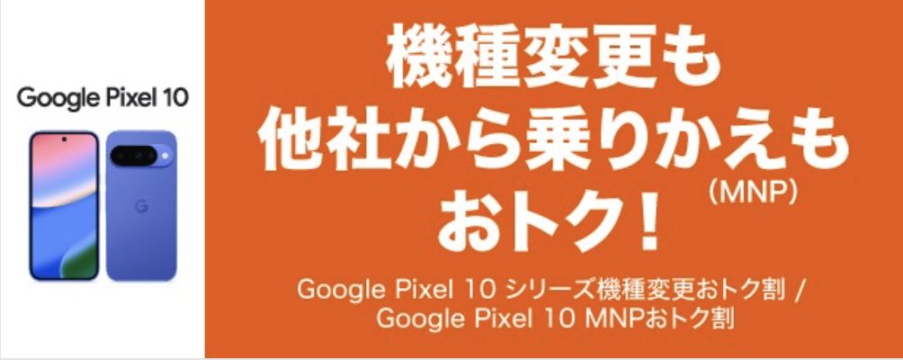 さらに、Google Pixel10シリーズやSamsung Galaxy Z Fold7/Z Flip7は、対象料金のプラン契約をすれば、さらにお得に乗り換えられるキャンペーンがあります。