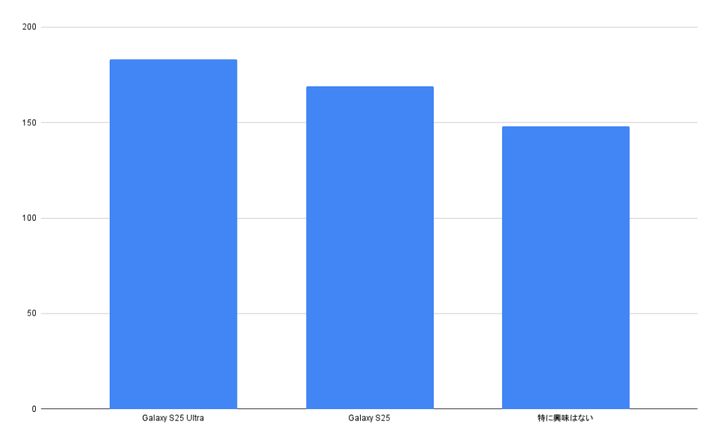 • 最上位モデルのGalaxy S25 Ultraへの関心が最も高く、高性能への期待が顕著です。