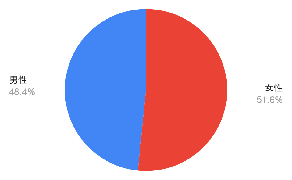 性別はほぼ均等に分布しており、偏りのない調査結果が得られています。