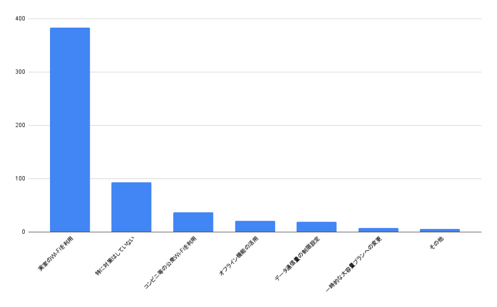 この結果は、Wi-Fi環境の活用や通信量を意識した利用など、何らかの通信対策を講じている可能性を示唆しています。