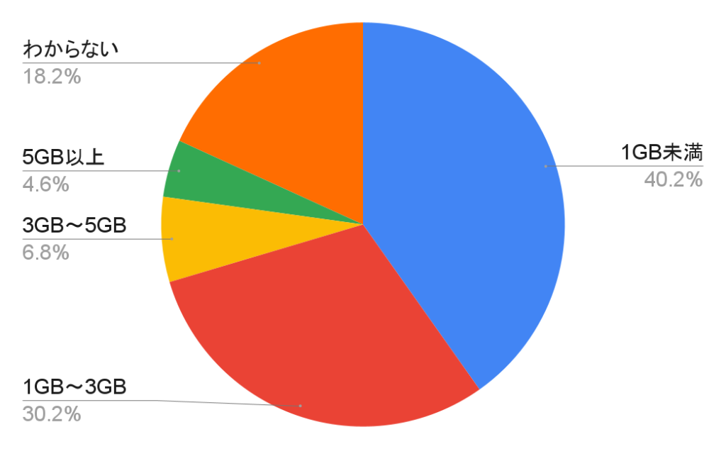 1GB未満の利用者が最も多く、続いて1〜3GBの利用者が多い結果となりました。