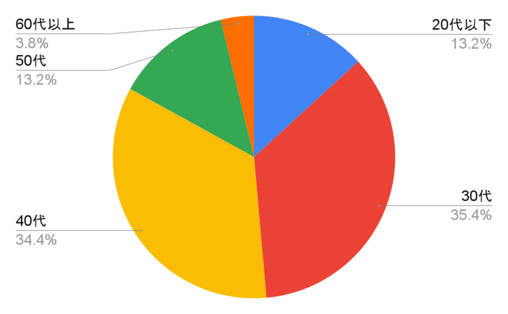 今回のアンケートでは女性の方が多く反応していただき、30代・40代を中心に多く回答いただきました。