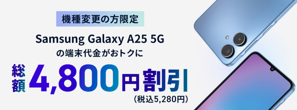 | 機種変更限定Samsung Galaxy A25 5G端末割 | |