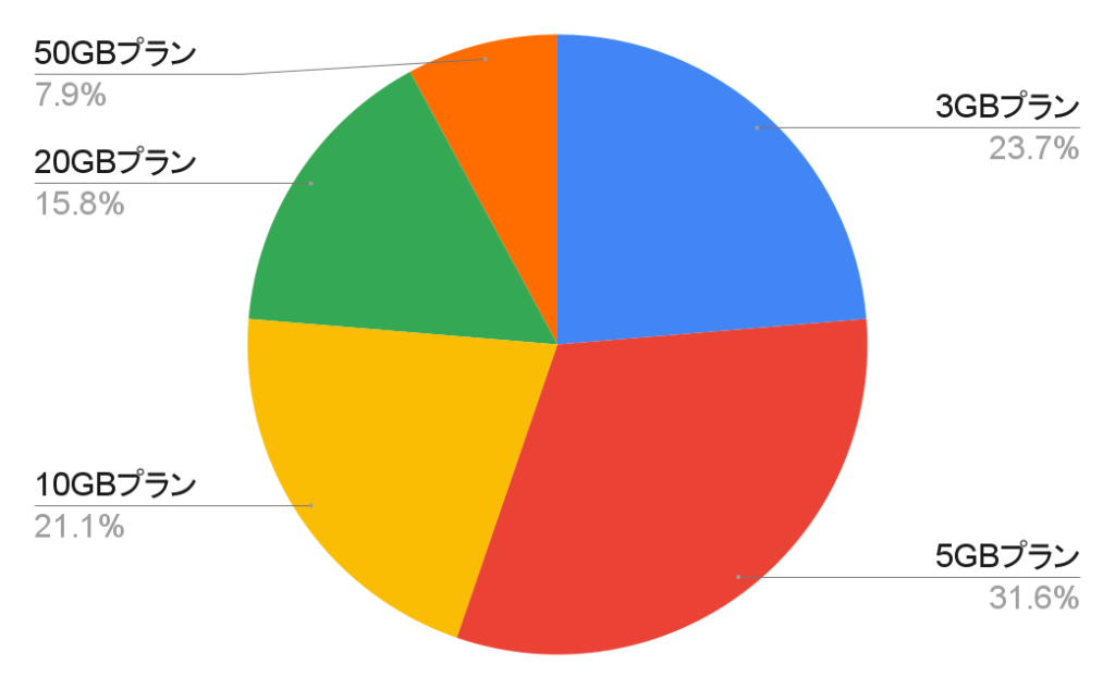 5GBプランを中心とした中容量プラン(3GB〜10GB)が全体の約76%を占めています。