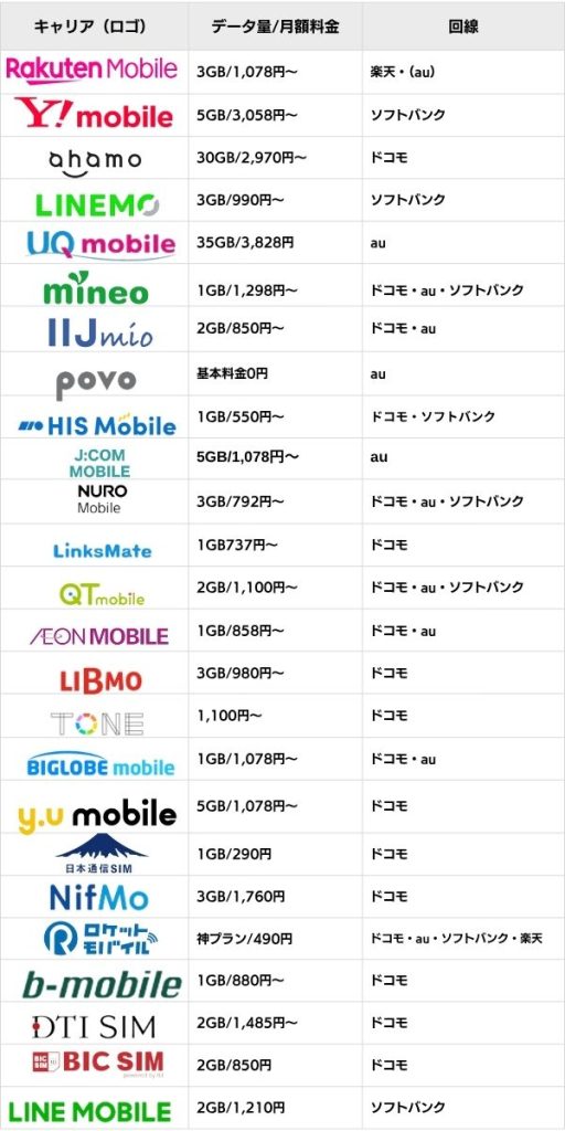 そこで本記事ではおすすめの格安SIMを全部で25社紹介します。
