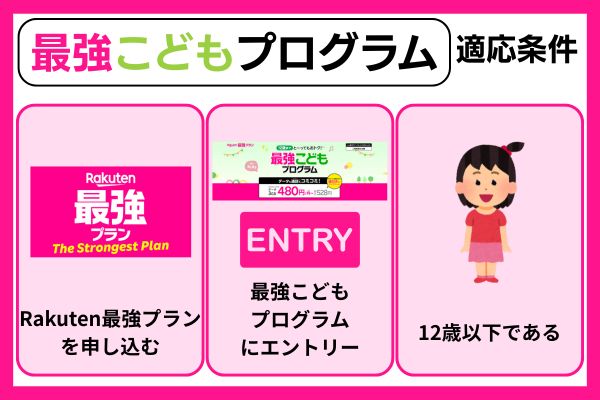 ここからは、楽天モバイル最強こどもプログラムの適用条件について解説していきます。