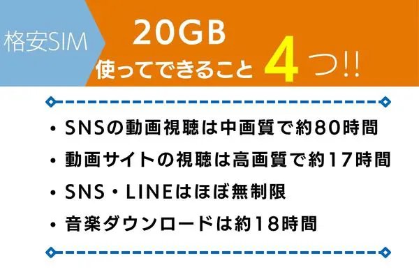 | 格安SIM | 20GB/月額料金 |