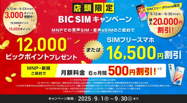 - BIC SIM|店頭限定最大12,000ポイントキャッシュバック