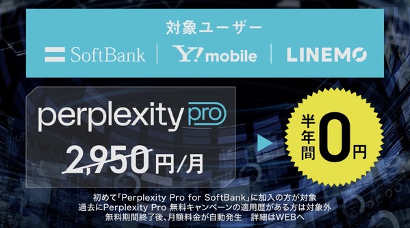 - Perplexity Pro 6カ月無料キャンペーン