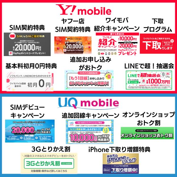 特典内容ワイモバイルUQモバイル